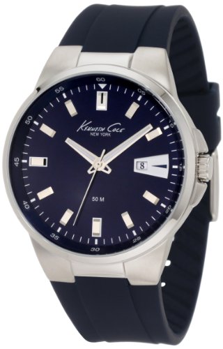 Casual watch, Japanese quartz movement, Polished silver-tone hands with luminous accents and sweep seconds, Applied polished silver-tone baton markers, White Arabic numbers and indices form surrounding minute track, Analog date aperture at three o'clock, Brushed blue dial, Dark blue rubber strap witKenneth Cole New York Men's KC1671 Analog Blue Dial Watch Do not Miss!! Casual watch, Japanese quartz movement, Polished silver-tone hands with luminous accents and sweep seconds, Applied polished silver-tone baton markers, White Arabic numbers and indices form surrounding minute track, Analog date aperture at three o'clock, Brushed blue dial, Dark blue rubber strap wit... Kenneth Cole New York Men's KC1671 Analog Blue Dial Watch