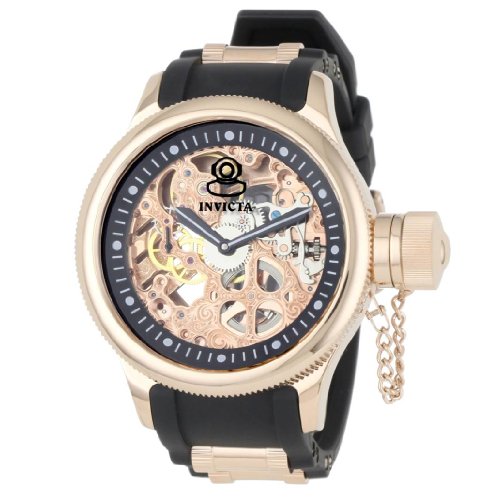 The Invicta Men's 1090 Russian Diver Mechanical Skeleton Dial Black Polyurethane Watch is a functional fashion statement all on its own. Its stylish skeleton dial design adds a trendy feel to your collection. This watch begins with a prominent 52mm 18k rose gold-plated stainless steel case with a roInvicta Men's 1090 Russian Diver Mechanical Skeleton Dial Black Polyurethane Watch Do not Miss!! The Invicta Men's 1090 Russian Diver Mechanical Skeleton Dial Black Polyurethane Watch is a functional fashion statement all on its own. Its stylish skeleton dial design adds a trendy feel to your collection. This watch begins with a prominent 52mm 18k rose gold-plated stainless steel case with a ro... Invicta Men's 1090 Russian Diver Mechanical Skeleton Dial Black Polyurethane Watch